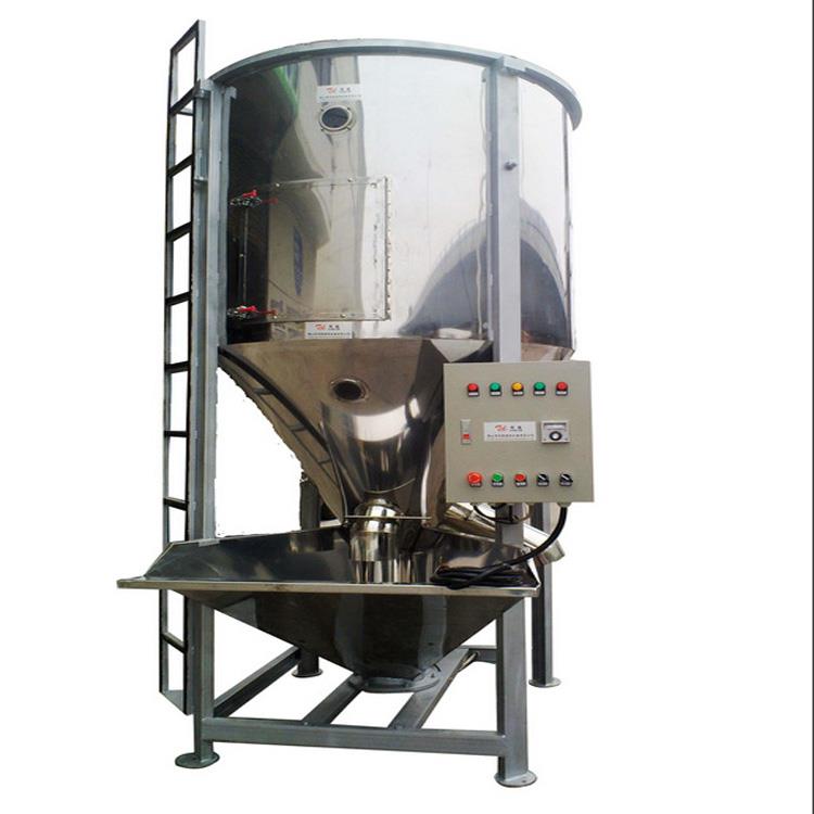 【大型立式不锈钢搅拌机】工作原理:运用螺杆的迅速旋转将原料从桶的底部从中心抬至底部,然后将其倒入伞状,然后赶回底部,使原料在桶中上下滚动并在短时间内搅拌,可以将大量原料均匀混合。2。大型立式不锈钢加热混合机的特征:粉末混合机主要用以化学粉,碳酸钙的活化处理,塑料粉,陶瓷色釉等行业,适用于造粒,色母粉的混合,改性,均质,混合加工等。