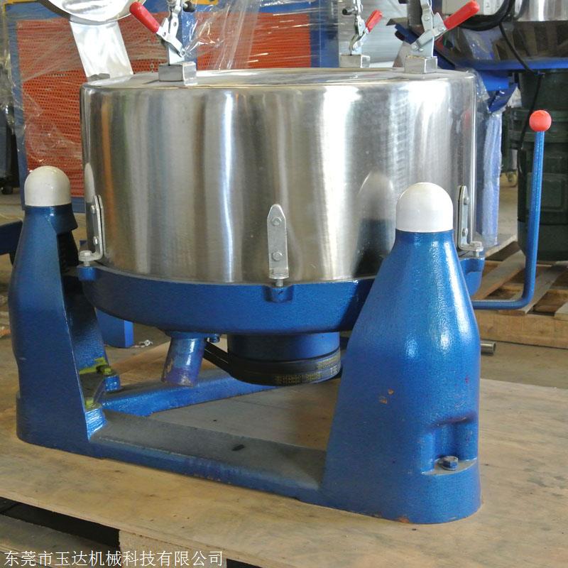 三足式离心机是使用最普遍的过滤离心机。当使用离心式过滤器过滤包含十分小的颗粒的悬浮液时,通常使用滤布作为过滤介质,并且要求滤饼相对移动。显然,满足这些要求的最简便的方法是三个脚式离心机。它有一个带垂直轴的圆筒形鼓,坚实的底部和半封闭的顶部。顶部的外围称做鼓轮辋。滚筒支撑在三脚架上,因此取名为三足式离心机。